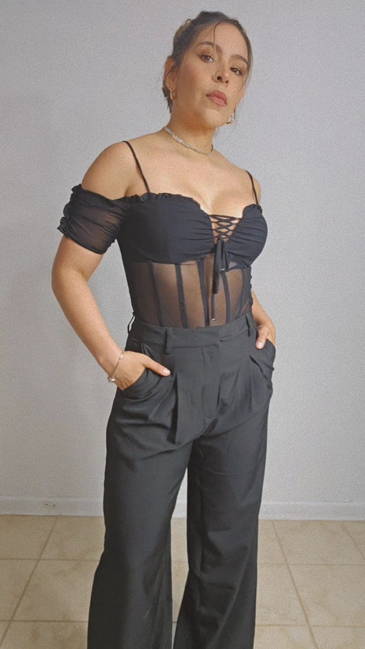 High Cut Bodysuit- black