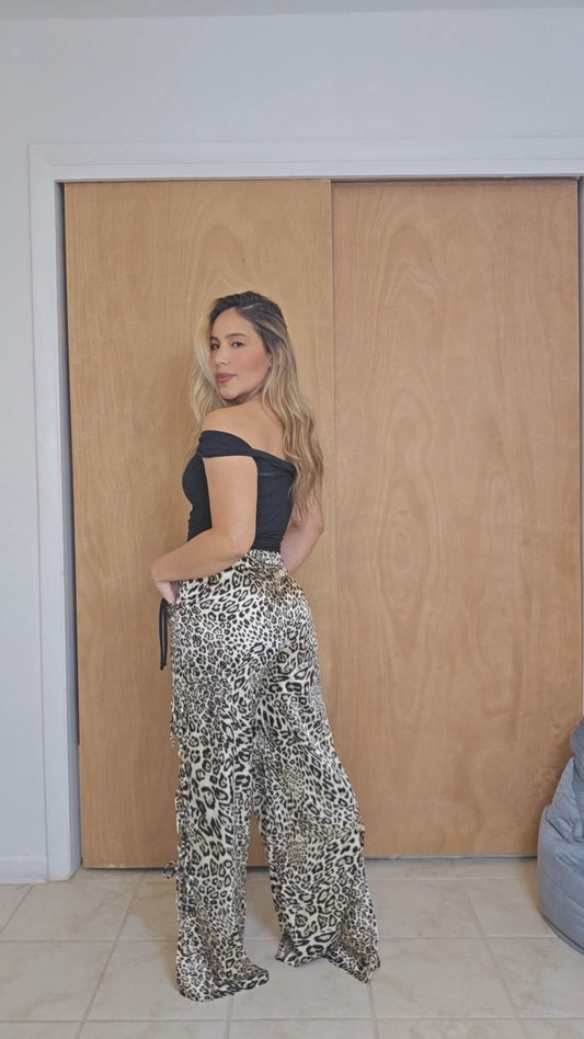 Leopard Open side tie Wide Pants